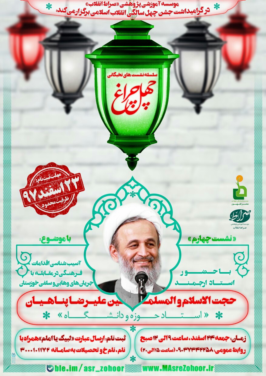 راشدی مسئول ارتباطات مؤسسه آموزشی پژوهشی «صراط» اهواز به حلقه وصل گفت: به مناسبت گرامیداشت چهل سالگی انقلاب اسلامی برگزاری سلسله نشست های «چهل چراغ» را آغاز کردیم.