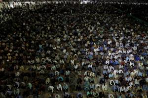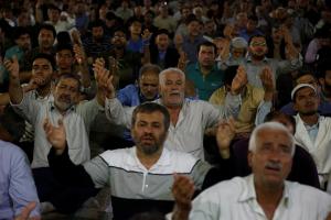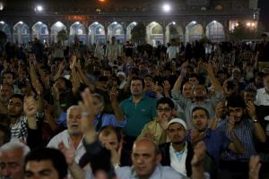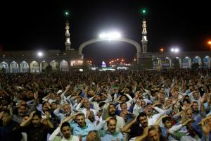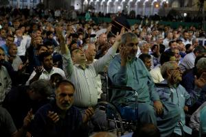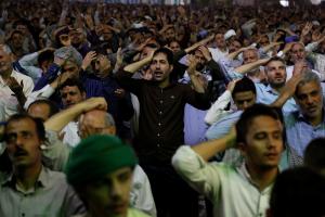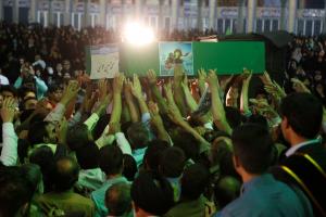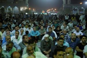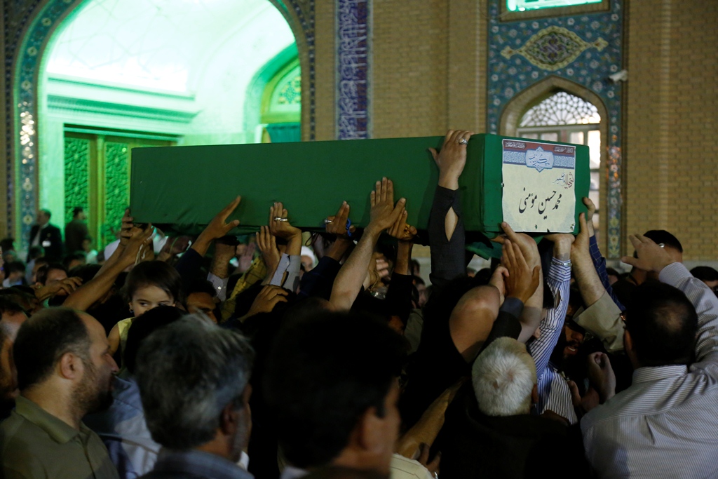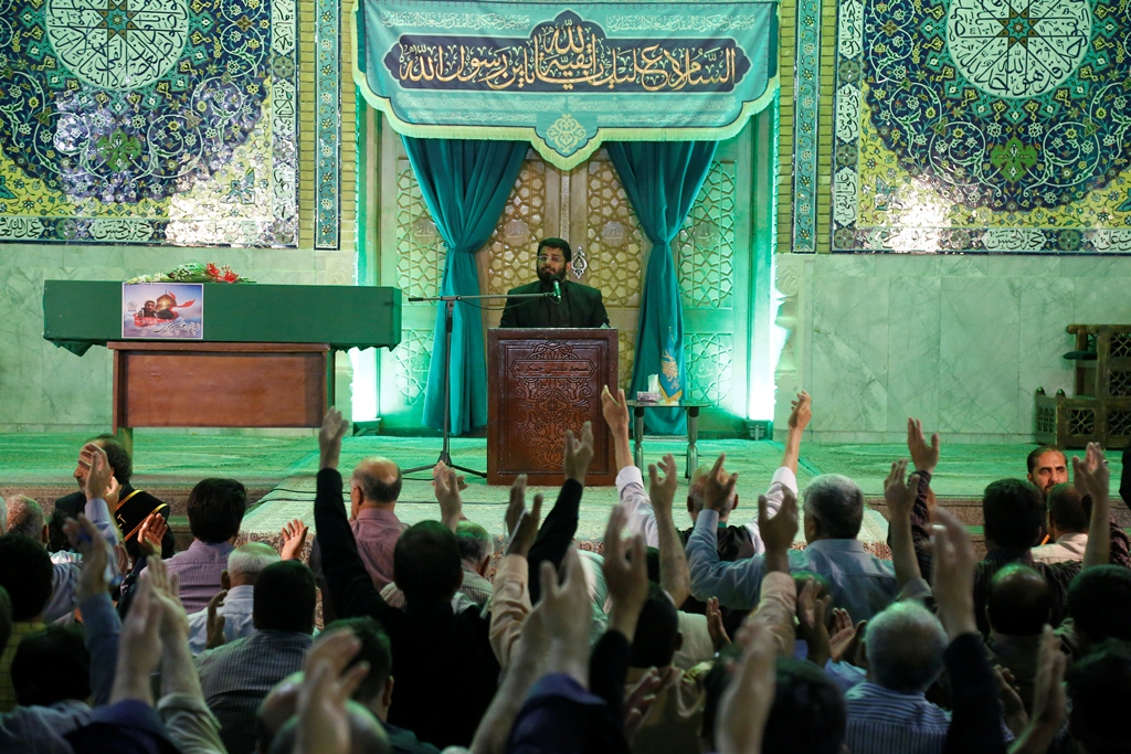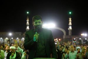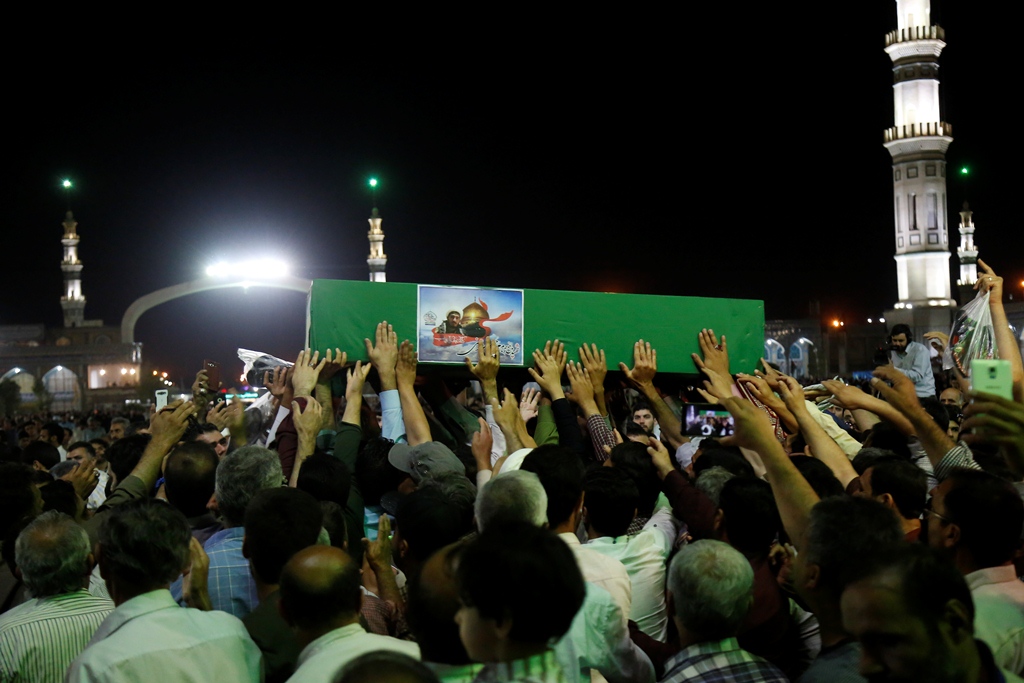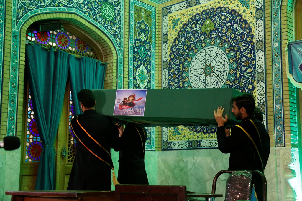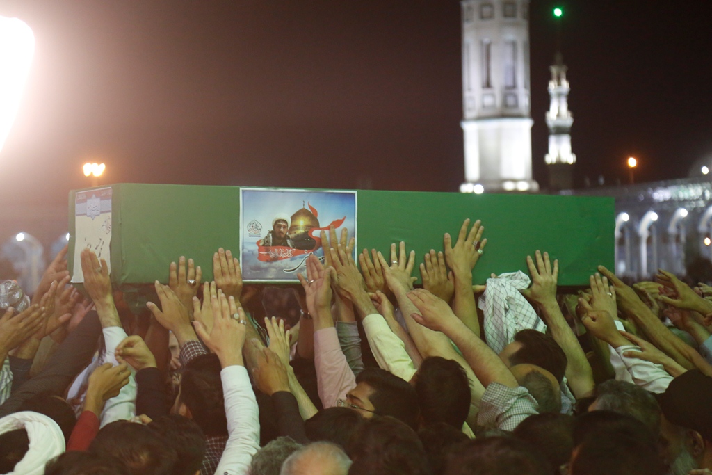 عاشقان و منتظران امام زمان(عجل الله تعالی فرجه) در مراسم دعای توسل با پیکر شهید مدافع حرم محمد حسین مومنی از لشکر فاطمیون وداع کردند.