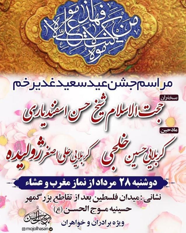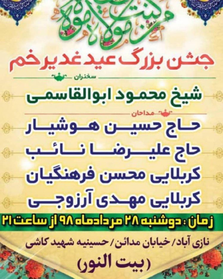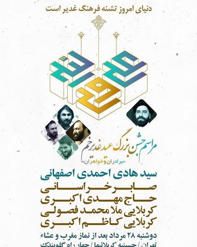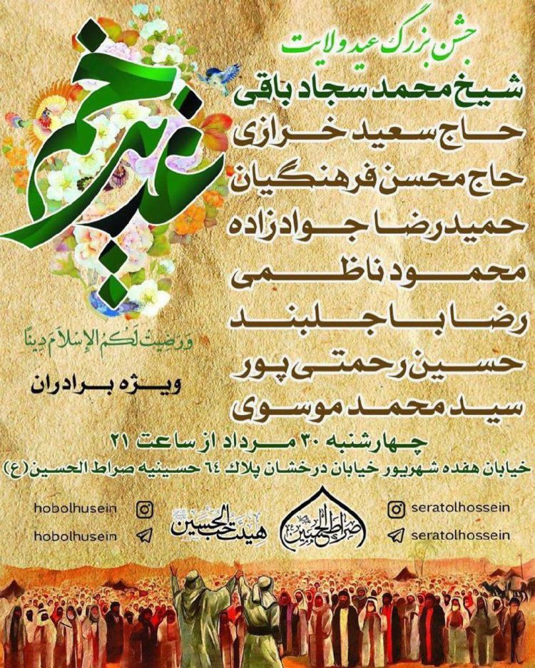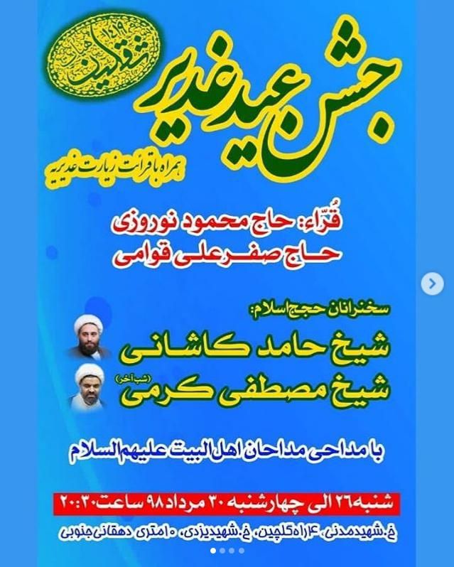 در همین راستا، هیئتهای مذهبی سراسر کشور به مناسبت فرا رسیدن شب عید غدیر، مراسم و محافلی برپا میکنند.